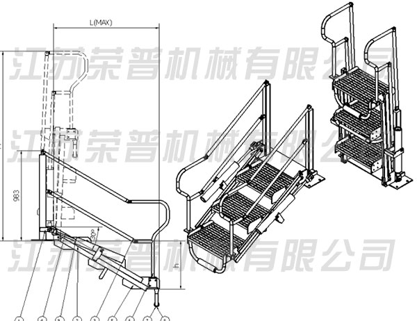 活動梯用于在平臺與罐車之間建立安全通道?;顒犹葜饕商げ健⒎鍪?、彈簧缸平衡系統(tǒng)等組成。
